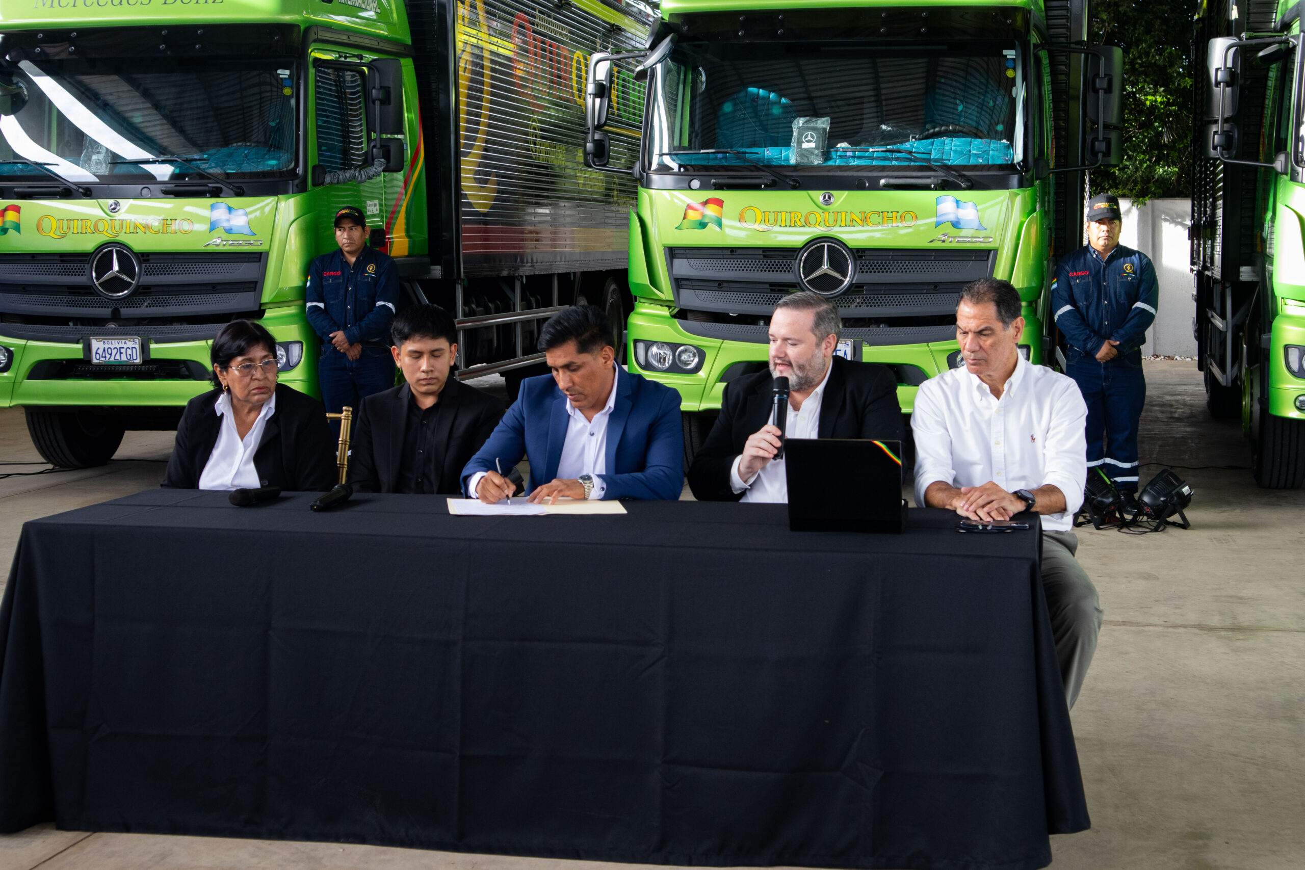 “Mercedes-Benz es sinónimo de productividad, eficiencia e innovación. Los Atego 2429 ofrecen la potencia y respaldo que las empresas necesitan para operar con los más altos estándares”, afirmó Carlos Balcázar, gerente de Vehículos Comerciales de Astara Ovando. Por su parte, Erick Cáceres, gerente general del Grupo Empresarial Quirquincho, destacó que esta inversión responde a una visión estratégica orientada a la excelencia: “Confiar en Mercedes-Benz es apostar por un servicio superior. Estos camiones nos permitirán fortalecer nuestras operaciones y seguir brindando soluciones de transporte de primer nivel a nuestros clientes”.